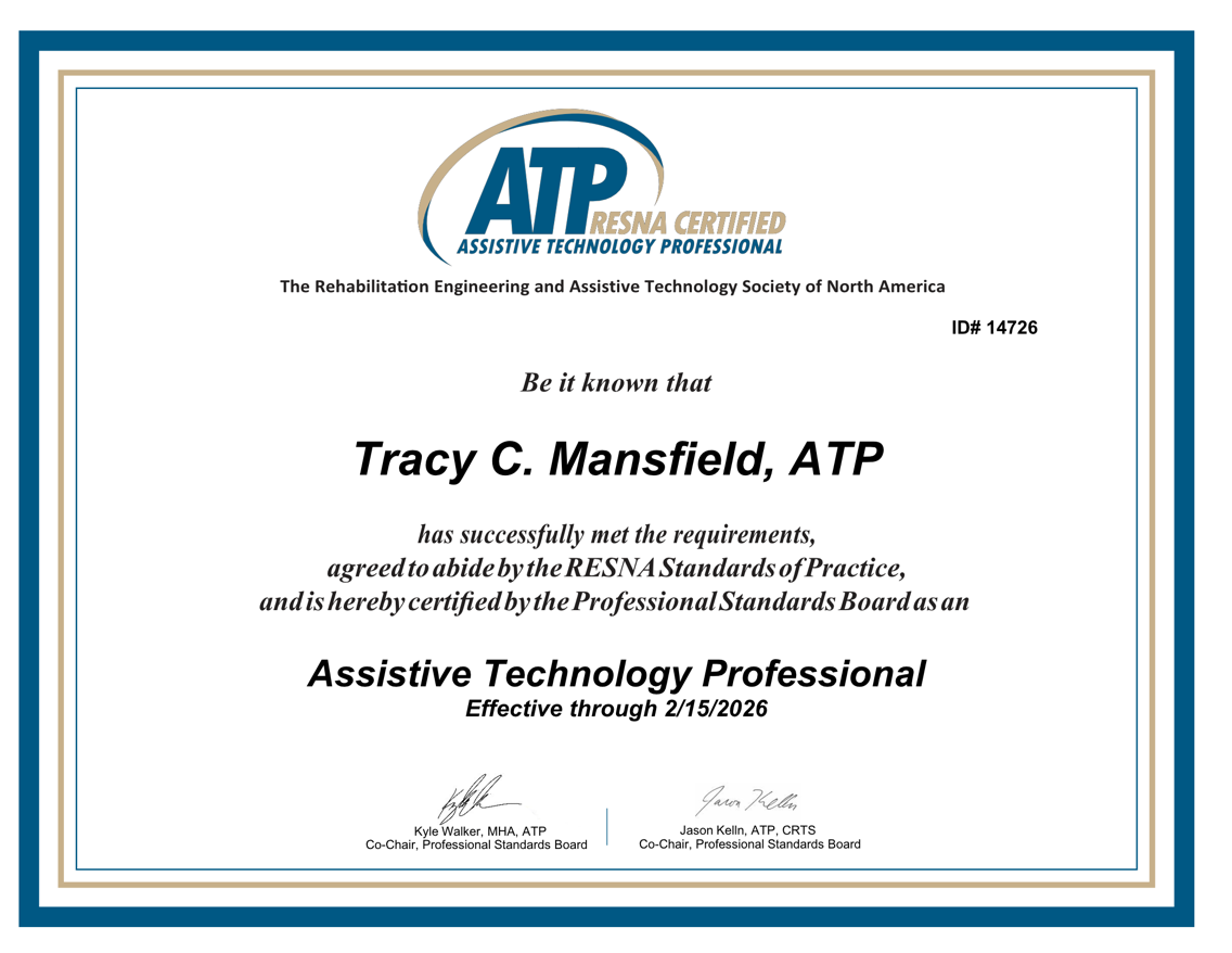 I have been an SLP and ATP in intensely special education for going on 20 years, and I am not sure yet where those pursuits will lead me in the future.